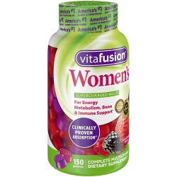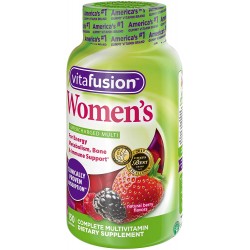El multivitamínico para mujeres de Vitafusion proporciona un multivitamínico completo y delicioso, especialmente formulado para satisfacer las necesidades de salud de las mujeres. Cada deliciosa porción de dos gomitas combina vitaminas y minerales esenciales con sabores de frutas naturales para proporcionar: metabolismo energético y soporte óseo; Una excelente fuente de vitaminas A, C y D. Sabor galardonado con deliciosos sabores de bayas naturales. Estas declaraciones no han sido evaluadas por la Administración de Drogas y Alimentos. Este producto no está destinado a diagnosticar, tratar, curar o prevenir ninguna enfermedad.