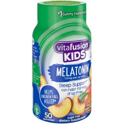 Kids Melatonin para niños,cada porción tiene 1.5 mg de melatonina para dormir, más una fusión de flor de la pasión, manzanilla y bálsamo de limón en un sabor natural de durazno tropical. La melatonina funciona naturalmente con el cuerpo de su hijo para ayudarlo a conciliar el sueño. No genera hábito y no contiene drogas. Estas declaraciones no han sido evaluadas por la Administración de Drogas y Alimentos. Este producto no está destinado a diagnosticar, tratar, curar o prevenir ninguna enfermedad.